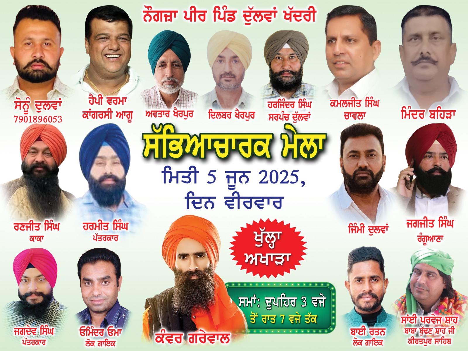 ਮਾਜਰੀ30 ਮਈ( ਰਣਜੀਤ ਕਾਕਾ)ਸ਼ਿਵਾਲਿਕ ਦੀਆਂ ਪਹਾੜੀਆਂ ਵਿੱਚ ਵਸੇ ਮੋਹਾਲੀ ਜ਼ਿਲੇ ਦੇ ਪਿੰਡ ਦੂੱਲਵਾਂ ਖੱਦਰੀ ਵਿਖੇ ਹਰ ਸਾਲ ਦੀ ਤਰ੍ਹਾਂ ਨੌਗ਼ਜ਼ਾ ਪੀਰ ਤੇ ਪੰਜ ਪੀਰ ਦੀ ਦਰਗਾਹ ਤੇ ਸਲਾਨਾ ਮੇਲਾ 5 ਜੂਨ ਦਿਨ ਵੀਰਵਾਰ ਨੂੰ ਕਰਵਾਇਆ ਜਾ ਰਿਹਾ ਹੈ