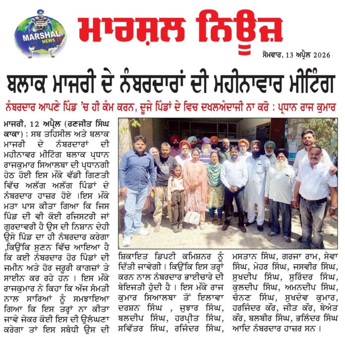 ਬਲਾਕ ਮਾਜਰੀ ਦੇ ਨੰਬਰਦਾਰਾਂ ਦੀ ਮਹੀਨਾਵਾਰ ਮੀਟਿੰਗ