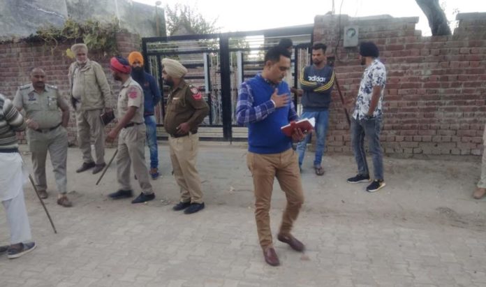 ਫੋਟੌ ਕੈਪਸਨ ਪਿੰਡ ਮਸਤਗੜ੍ਹ ਵਿਖੇ ਪੁਲਿਸ ਮੌਕੇ ਤੇ ਪਹੁੰਚ ਕੇ ਜਾਂਚ ਪੜਤਾਲ ਕਰਦੀ ਹੋਈ