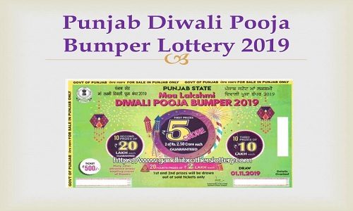 ਲਾਟਰੀ ਵਿਭਾਗ ਵਲੋਂ ਅੱਜ ਲੁਧਿਆਣਾ ਵਿਖੇ ਪੰਜਾਬ ਸਟੇਟ ਮਾਂ ਲਕਸ਼ਮੀ ਦੀਵਾਲੀ ਪੂਜਾ ਬੰਪਰ-2019 ਦਾ ਡਰਾਅ ਕੱਢਿਆ ਗਿਆ। ਲਾਟਰੀ ਵਿਭਾਗ ਦੇ ਬੁਲਾਰੇ ਨੇ ਜਾਣਕਾਰੀ ਦਿੰਦਿਆਂ ਦੱਸਿਆ ਕਿ 5 ਕਰੋੜ ਰੁਪਏ ਦੇ ਪਹਿਲੇ ਦੋ ਇਨਾਮ(2.5 ਕਰੋੜ ਰੁਪਏ ਹਰੇਕ) ਟਿਕਟ ਨੰਬਰ ਏ-411577 ਅਤੇ ਬੀ-315020 ਨੇ ਜਿੱਤੇ ਹਨ।