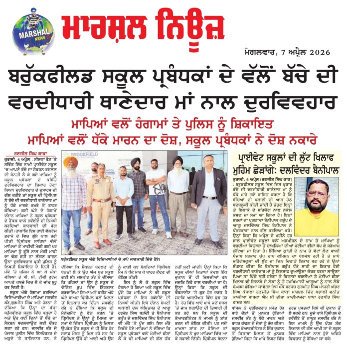 ਕੁਰਾਲੀ,6 ਅਪਰੈਲ (ਰਣਜੀਤ ਸਿੰਘ ਕਾਕਾ)ਸੀਸਵਾਂ ਰੋਡ ‘ਤੇ ਸਥਿੱਤ ਇੱਕ ਨਾਮੀਂ ਪ੍ਰਾਈਵੇਟ ਸਕੂਲ ‘ਚ ਆਪਣੇ ਬੱਚੇ ਦਾ ਸੈਕਸ਼ਨ ਬਦਲਣ ਦੀ ਬੇਨਤੀ ਲੈ ਕੇ ਗਏ ਮਾਪਿਆਂ ਨੂੰ ਸਕੂਲ ਪ੍ਰਬੰਧਕਾਂ ਦੇ ਕਥਿੱਤ ਦੁਰਵਿਵਹਾਰ ਦਾ ਸ਼ਿਕਾਰ ਹੋਣਾ ਪਿਆ। ਦੁਰਵਿਵਹਾਰ ਦੇ ਦੁਸਾਹਸ ਦੀ ਗੱਲ ਕਰੀਏ ਤਾਂ ਸਕੂਲ ਦੀ ਪ੍ਰਿੰਸੀਪਲ ਨੇ ਬੱਚੇ ਦੀ ਵਰਦੀਧਾਰੀ ਥਾਣੇਦਾਰ ਮਾਂ ਨੂੰ ਧੱਕੇ ਮਾਰਕੇ ਕਮਰੇ ਤੋਂ ਬਾਹਰ ਕੱਢਿਆਕਈ ਘੰਟੇ ਦੇ ਹੰਗਾਮੇਂ ਦੌਰਾਨ ਮਾਪਿਆਂ ਨੇ ਸਕੂਲ ਪ੍ਰਬੰਧਕਾਂ ਦੇ ਹੈਂਕੜ ਵਾਲੇ ਰਵੱਈਏ ਦੀ ਨਿਖੇਧੀ ਕਰਦਿਆਂ ਕਾਰਵਾਈ ਦੀ ਮੰਗ ਕੀਤੀ 1 ਹਾਲਾਂਕਿ ਇਸ ਹਾਈ ਵੋਲਟੇਜ ਡਰਾਮੇ ਦੇ ਵਿਚ ਗੁੱਸੇ ਨਾਲ ਭਰੀ ਪੀਤੀ ਪ੍ਰਿੰਸੀਪਲ ਸਾਹਿਬਾਂ ਵੱਲੋਂ ਮਾਪਿਆਂ ਤੋਂ ਮਾਫੀਵੀ ਮੰਗੀ ਗਈ ਪਰ ਮਾਪਿਆ ਨੂੰ ਗੁੱਸੇ ਨਾਲ ਮੰਗੀ ਮਾਫੀ ਦਾ ਢੰਗ ਸਹੀ ਨਾ ਲੱਗਣ ਕਾਰਨ ਉਨਾਂ ਦੁਰਵਿਵਹਾਰ ਪ੍ਰਤੀ ਪੁਲਿਸ ਨੂੰ ਲਿਖਤੀ ਸ਼ਿਕਾਇਤ ਦੇ ਦਿਤੀ ਹੈ1 ਮੌਕੇ ਤੇ ਪੁਲਿਸ ਨੇ ਆਕੇ ਮੌਕਾ ਵੇਖਿਆ ਤੇ ਸੀ. ਸੀ. ਟੀਵੀ ਫੁਟੇਜ ਆਪਣੇ ਕਬਜ਼ੇ ਵਿਚ ਲੈਕੇ ਜਾਂਚ ਸ਼ੁਰੂ ਕਰ ਦਿਤੀ ਹੈ।