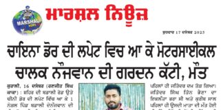 ਚਾਈਨਾ ਡੋਰ ਦੀ ਲਪੇਟ ਵਿੱਚ ਆ ਕੇ ਮੋਟਰਸਾਈਕਲ ਚਾਲਕ ਨੌਜਵਾਨ ਦੀ...