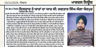 ਨਮ ਅੱਖਾਂ ਨਾਲ ਯੂਥ ਆਗੂ ਜਗਤਾਰ ਸਿੰਘ ਜੱਗਾ ਖੈਰਪੁਰ ਨਮਿਤ ਸ਼ਰਧਾਂਜਲੀ...